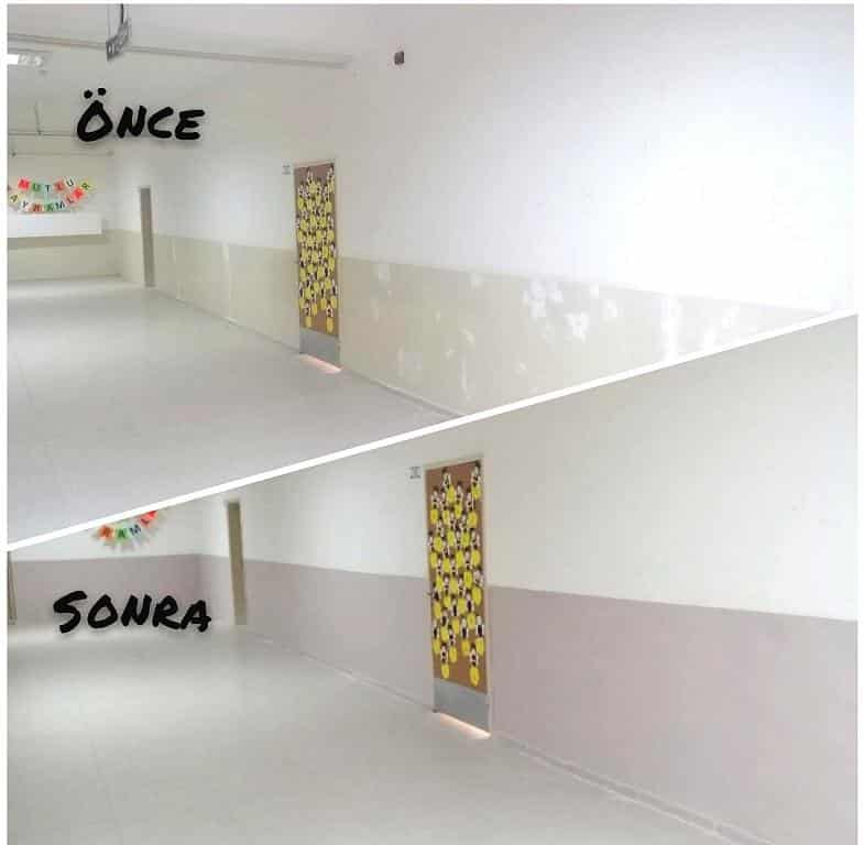 Okulumuzun kötü durumda olan duvarları Müdürümüz Fevzi TÜMEN sayesinde boyanıp öğrencilerimizin ilgisini çekecek öğretici afişler ve posterlerle donatıldı.